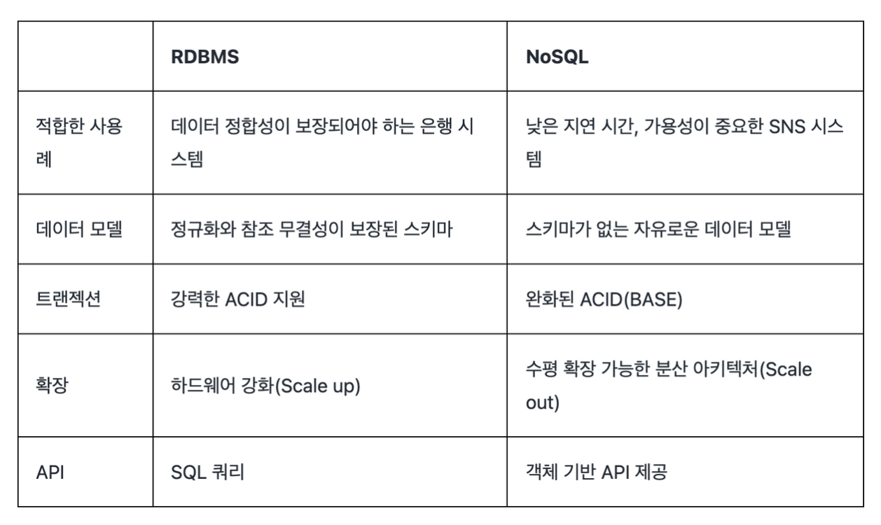 관계형 DB의 장점 = 비 관계형 DB의 단점, 비 관계형 DB의 장점 = 관계형 DB의 단점이라고 생각하면 된다.