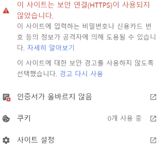 특정 원인만 허용하고 싶다면 trust-server-cert-failures 옵션으로도 사용할 수 있습니다.