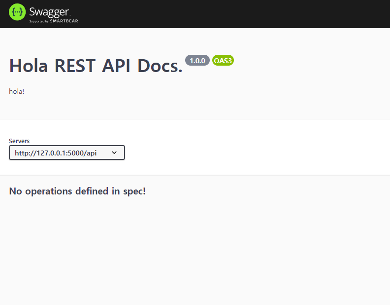 서버를 실행하고 http://127.0.0.1:port/api-doc 로 접속해보면 세팅이 완료됩니다.
