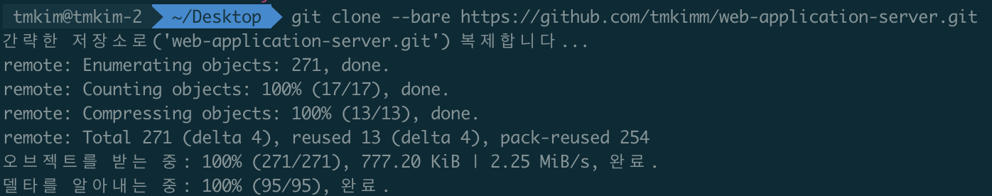 2. 지금까지 사용했던 저장소를 --bare 옵션 추가하여 clone